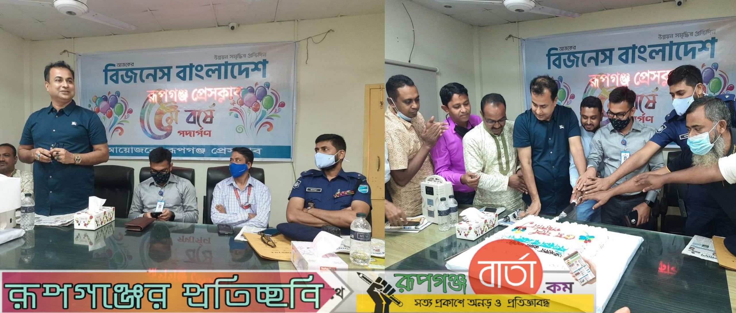 রূপগঞ্জ বার্তা ডেস্কঃ আজকের বিজনেস বাংলাদেশ পত্রিকার ৫ম বর্ষে পদার্পণ উপলক্ষে কেককাটা ও আলোচনা সভা অনুষ্ঠিত হয়েছে। সোমবার দুপুরে উপজেলার রূপগঞ্জ প্রেসক্লাব কার্যালয়ে এ অনুষ্ঠানের আয়োজন করা হয়।
