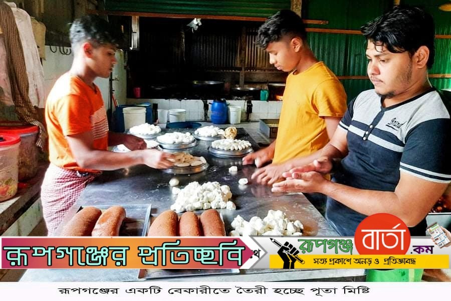 সম্প্রতি সামাজিক যোগাযোগ মাধ্যমে ভাইরাল হওয়া কাঁচা মরিচের রসগোল্লা আর গোলাকান্দাইল মেলার ঐতিহ্যের পরিচায়ক শত বছরের পুরনো রেসিপিতে পূতা বা বালিশ মিষ্টি তৈরি ও বিক্রির ধুম পড়েছে নারায়ণগঞ্জের রূপগঞ্জের তাঁতবাজার এলাকায়।