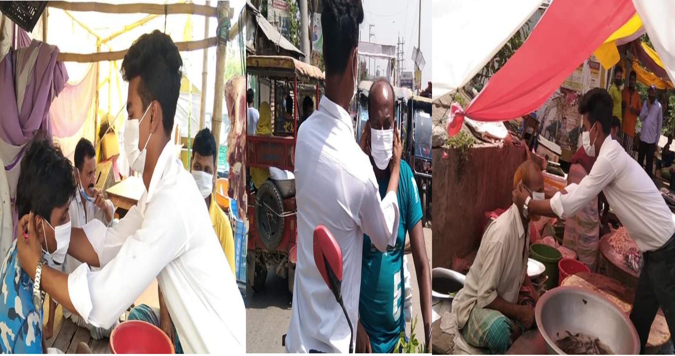 এসময় সবজি বিক্রেতা, গাড়ি চালক, পথচারী সহ বিভিন্ন শ্রেণীপেশার মানুষের মধ্যে বিনামূল্যে মাস্ক ও সাবান বিতরণ করা হয়।