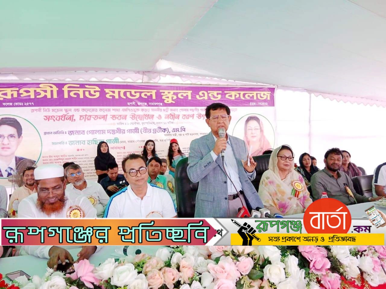 বৃহস্পতিবার (১ সেপ্টেম্বর) দুপুরে নারায়ণগঞ্জের রূপগঞ্জ উপজেলার রূপসী এলাকায় রূপসী নিউ মডেল স্কুল অ্যান্ড কলেজের কলেজ শাখা এমপিও ভুক্ত করায় বস্ত্র ও পাটমন্ত্রী গোলাম দস্তগীর গাজী বীর প্রতীককে সংবর্ধনা, নবনির্মিত চারতলা ভবন শুভ উদ্বোধন ও নবীন বরণ উৎসব অনুষ্ঠানে প্রধান অতিথির বক্তব্যে মন্ত্রী এসব কথা বলেন।