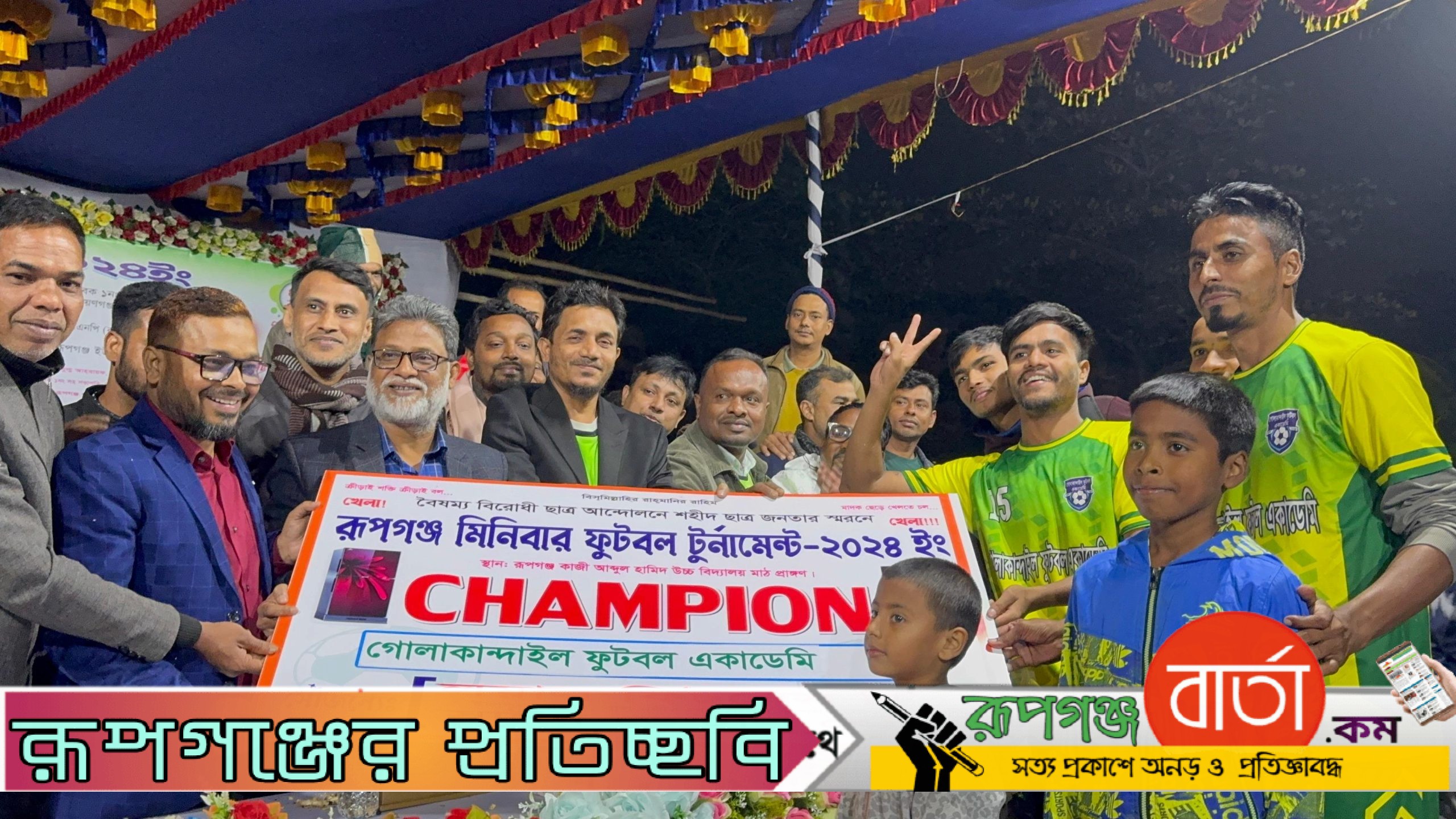 মাহামুদুল হাসান নয়ন : বৈষম্য বিরোধী ছাত্র আন্দোলনে শহীদদের স্মরনে নারায়ণগঞ্জের রূপগঞ্জে 'রূপগঞ্জ মিনিবার ফুটবল টুর্নামেন্ট"র ফাইনাল নাইট ম্যাচ অনুষ্ঠিত হয়েছে।