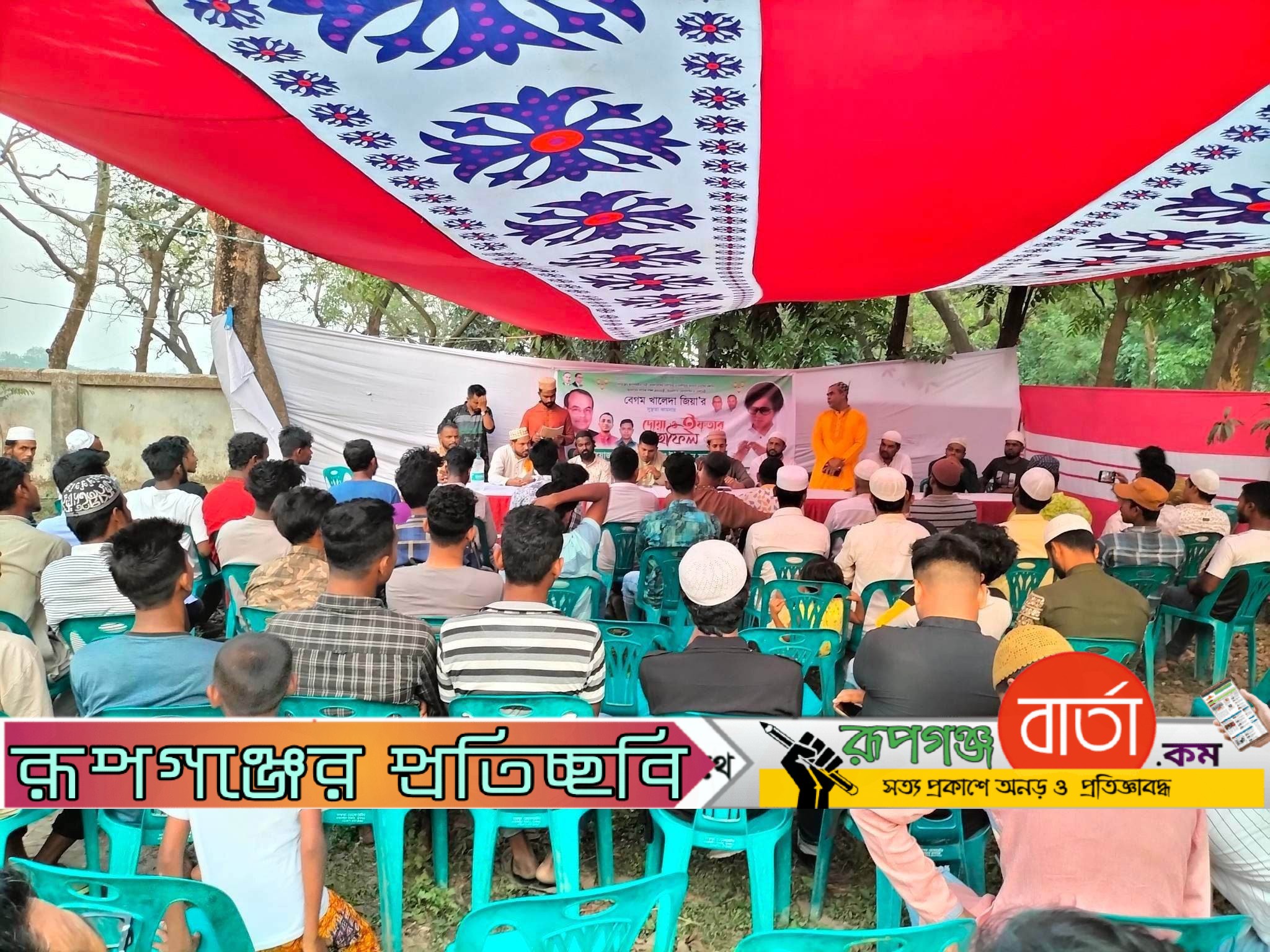 বিএনপির চেয়ারপার্সন বেগম খালেদা জিয়ার রোগ মুক্তি ও সুস্থতা কামনায় এবং বিএনপির ভারপ্রাপ্ত চেয়ারম্যান দেশনায়ক জনাব তারেক রহমানের দীর্ঘায়ু কামনায় নারায়ণগঞ্জের রূপগঞ্জে ইফতার মাহফিল ও আলোচনা সভা অনুষ্ঠিত হয়েছে। শুক্রবার (১৪ এপ্রিল) কায়েতপাড়া ইউনিয়ন যুবদলের উদ্যোগে এ ইফতার মাহফিল ও আলোচনা সভা অনুষ্ঠিত হয়।