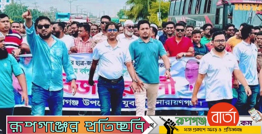 চব্বিশের ছাত্র-জনতার গণ-অভ্যুত্থানের স্বৈরাচার পতনের ১ম বর্ষপূর্তি উপলক্ষে বিজয় মিছিল করেছে রুপগঞ্জ উপজেলা যুবদল।