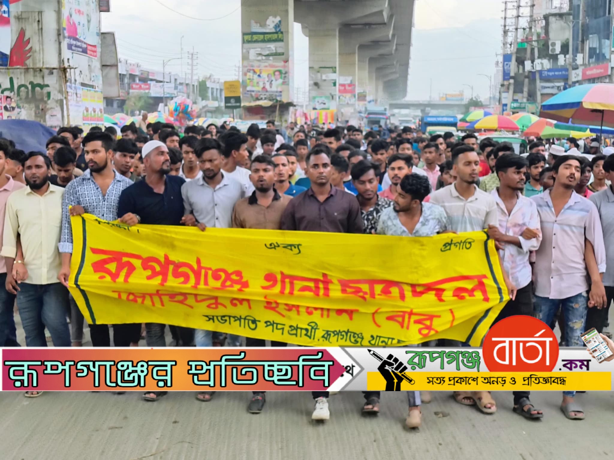 নারায়ণগঞ্জের রূপগঞ্জে উপজেলা ছাত্রদলের সভাপতি পদপ্রার্থী জাহিদুল ইসলাম বাবুর বিরুদ্ধে অপপ্রচারের প্রতিবাদে বিক্ষোভ মিছিল করেছে উপজেলা ছাত্রদলের নেতাকর্মীরা। সোমবার (২৬ মে) সকালে উপজেলার ভুলতা গাউছিয়া এলাকায় এ বিক্ষোভ মিছিল করা হয়।