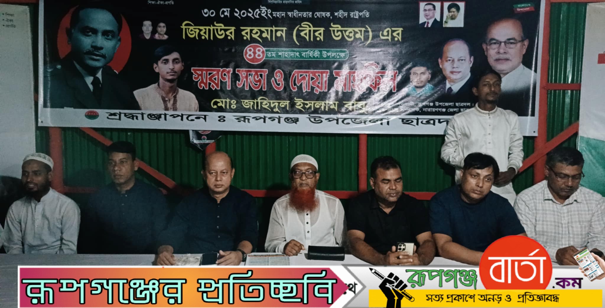 রূপগঞ্জে জিয়াউর রহমানের ৪৪তম শাহাদাত বার্ষিকী উপলক্ষে দোয়া ও মিলাদ মাহফিল