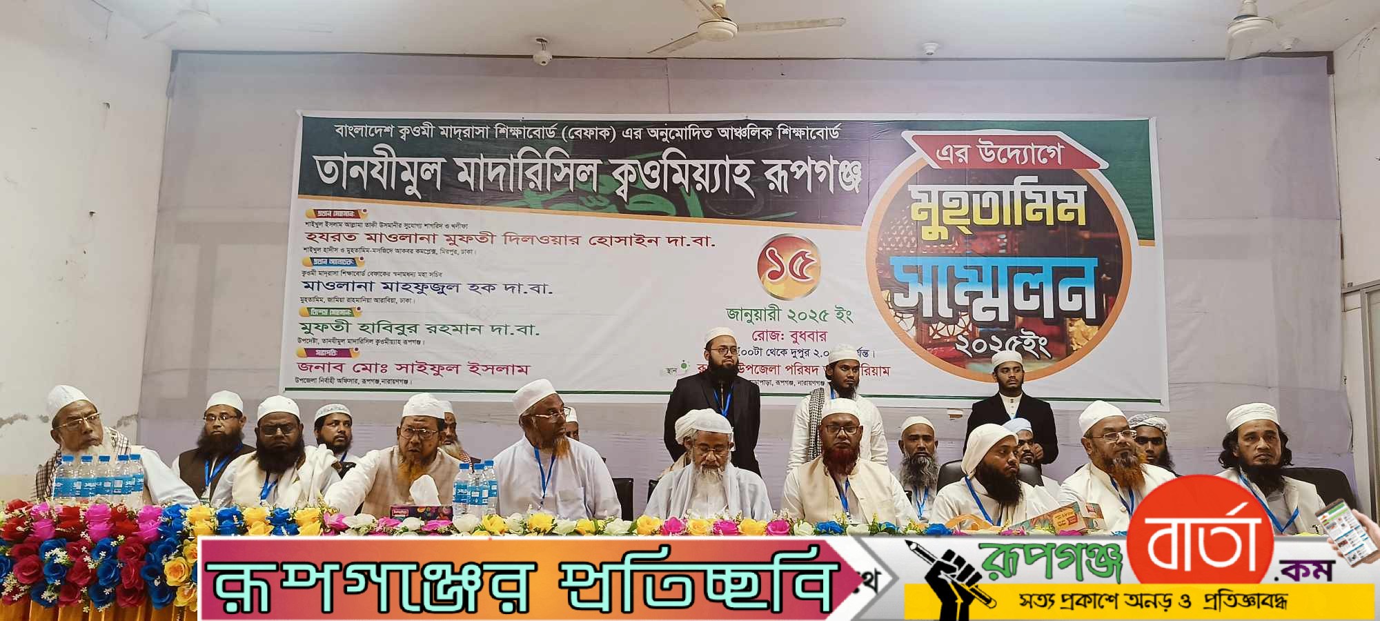 মাহামুদুল হাসান নয়ন: নারায়ণগঞ্জে রূপগঞ্জ উপজেলায় তানযীমুল মাদারিসিল ক্বওমিয়্যাহ রূপগঞ্জ এর উদ্যোগে মুহতামিম সম্মেলন অনুষ্ঠিত হয়েছে। বুধবার(১৫ জানুয়ারি) সকালে উপজেলা পরিষদ অডিটোরিয়ামে রূপগঞ্জ শাখার উদ্যোগে মুহতামিম সম্মেলনে সভাপতিত্ব করেন উপজেলা নির্বাহী অফিসার সাইফুল ইসলাম ও মুফতি মাওলানা বদরুল আলম সিলেটি সঞ্চালনায় প্রধান অতিথি হিসেবে উপস্থিত ছিলেন শাইখুল ইসলাম আল্লামা তাকী উসমানী হযরত মাওলানা মুফতি দিলওয়ার হোসাইন।