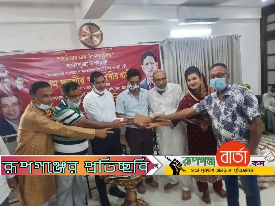সনাতন ধর্মাবলম্বীদের ধর্মীয় উৎসব লক্ষীপূজা উপলক্ষ্যে বস্ত্র ও পাট মন্ত্রী গোলাম দস্তগীর গাজী বীরপ্রতীকের পক্ষ থেকে উপহার সামগ্রী বিতরন করেছেন, রূপগঞ্জ ইউনিয়ন আওয়ামীলীগ নেতা মোহাম্মদ আনছার আলী।